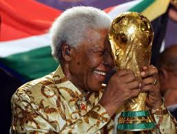 Mandela akifurahia siku Afrika Kusini ilipochaguliwa kuandaa michuano ya kombe la dunia