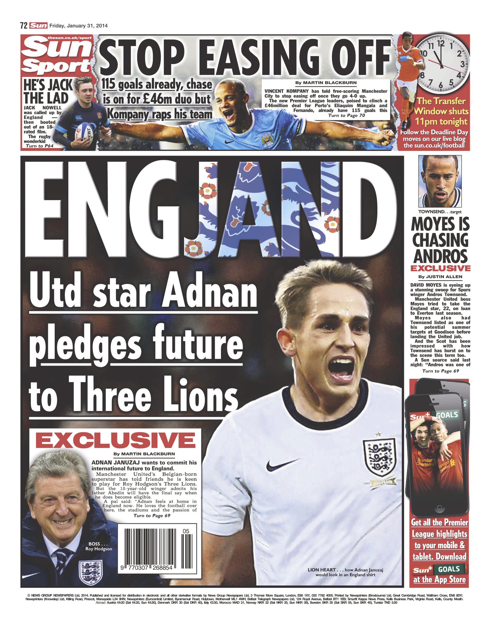 Frontpages: Magazeti ya michezo UK 31 Jan 2014