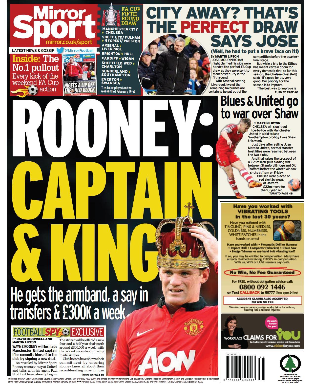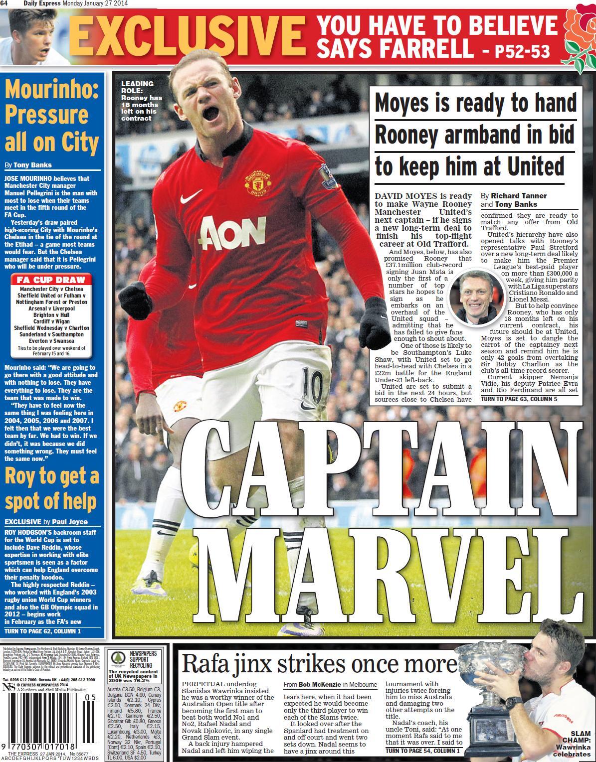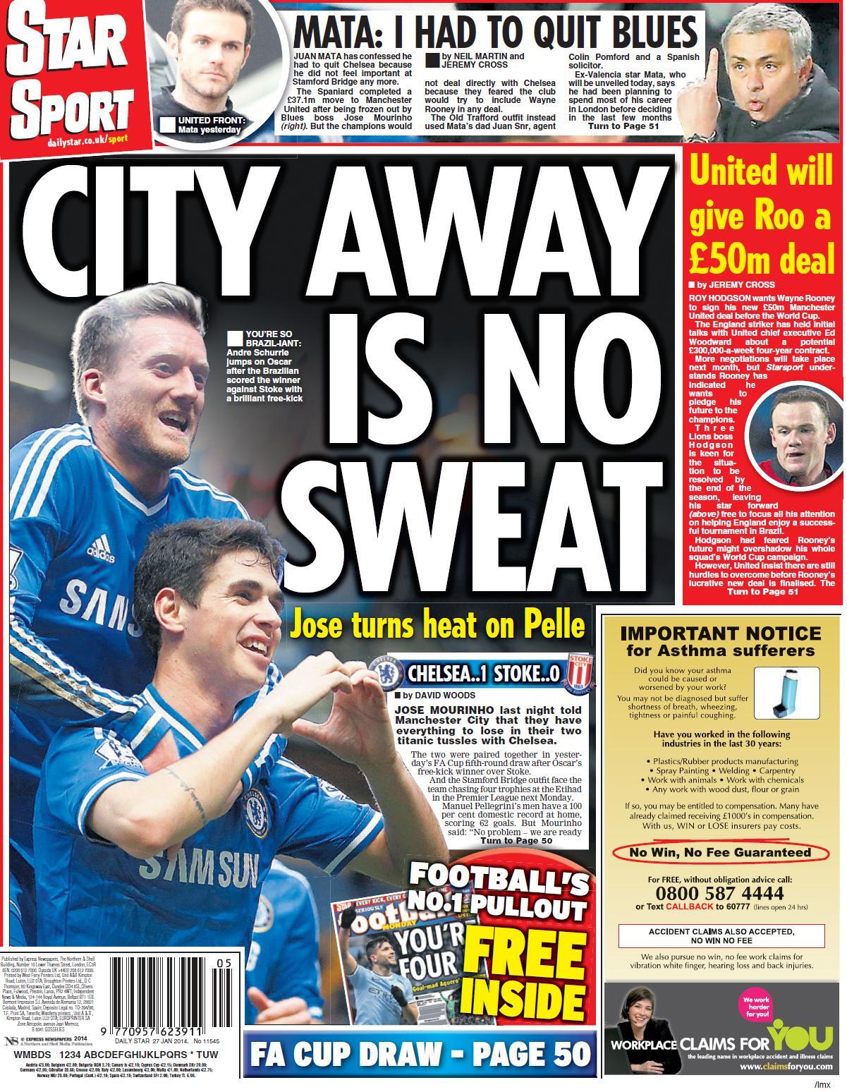 Frontpage: Magazeti ya michezo UK 27 Jan 14