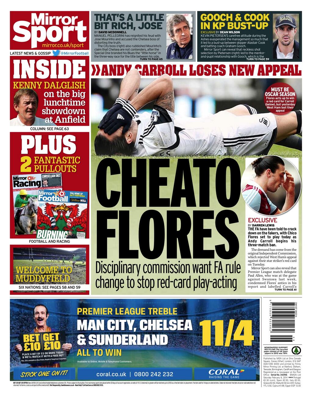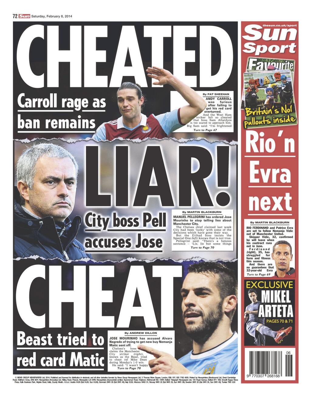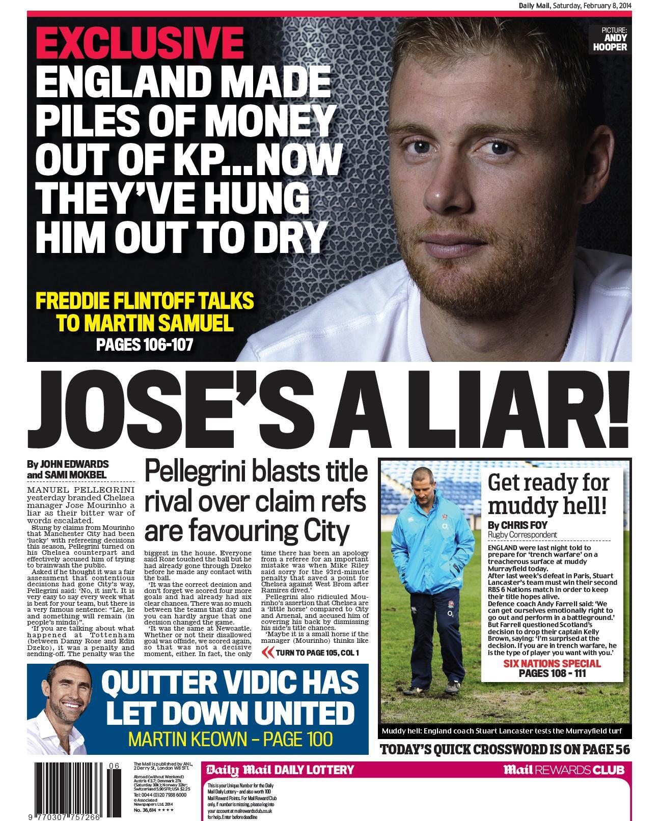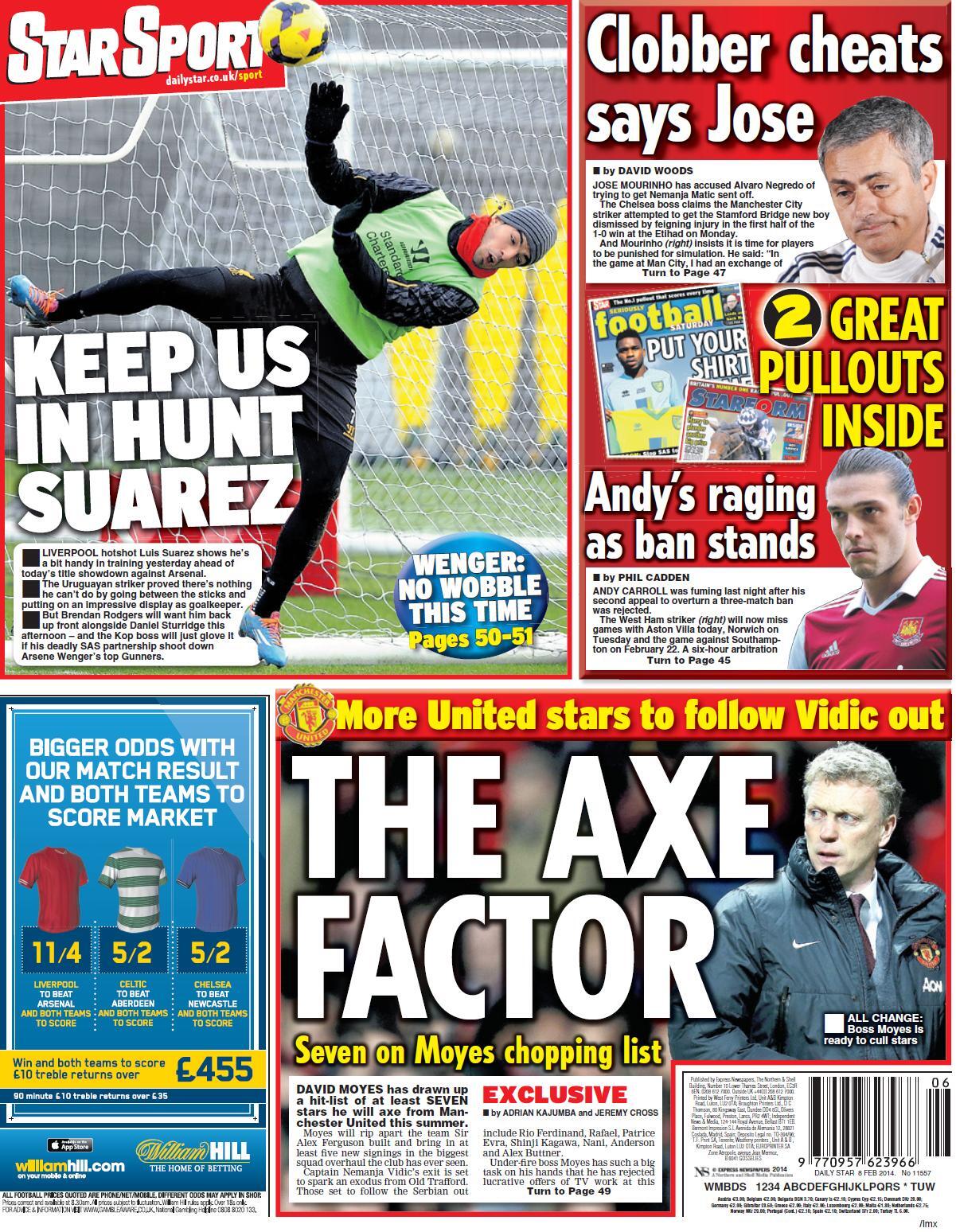 Frontpages: Magazeti ya michezo UK 8 Feb 14