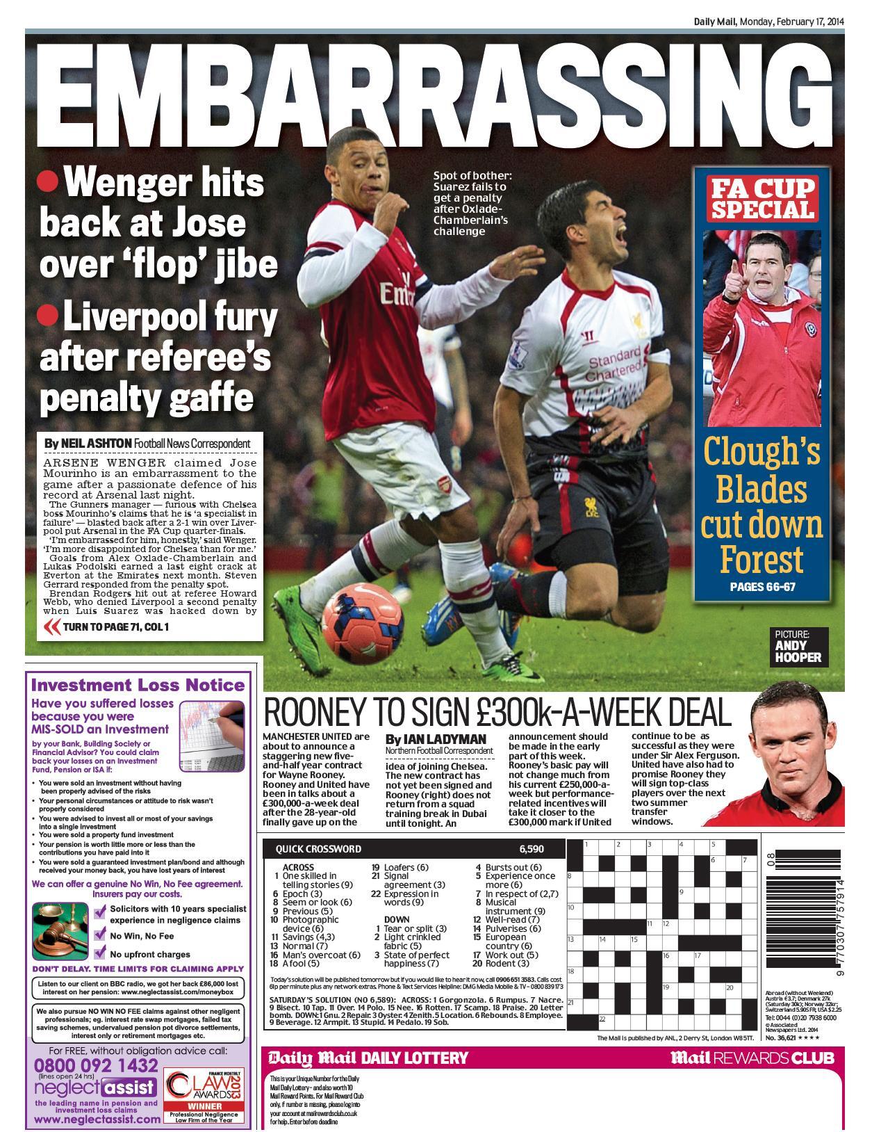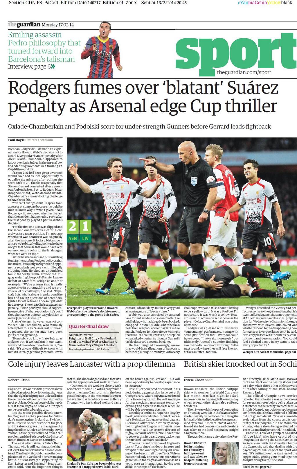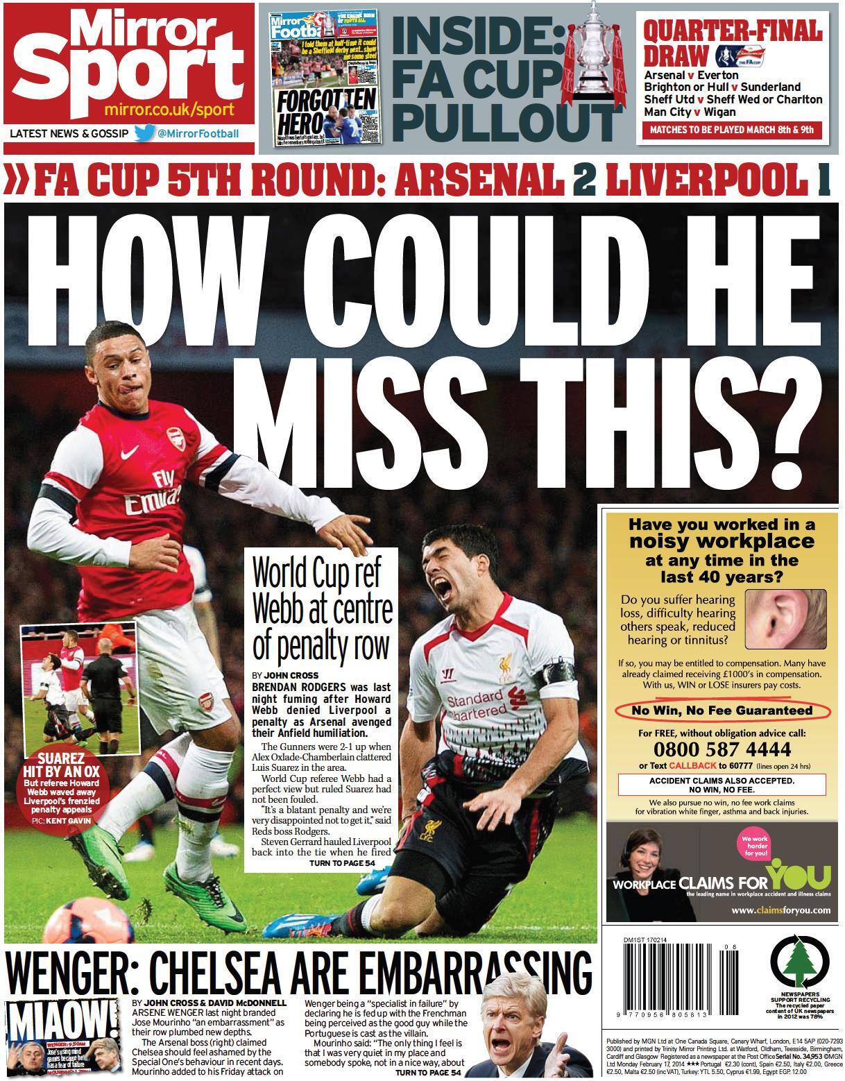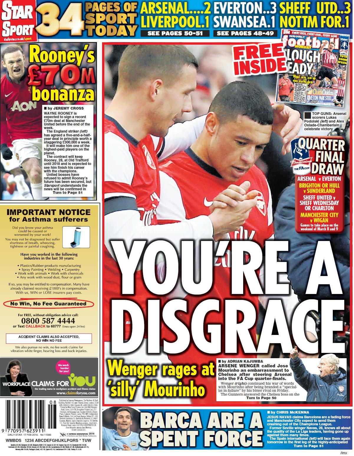 Frontpages: Magazeti ya michezo UK Feb 17