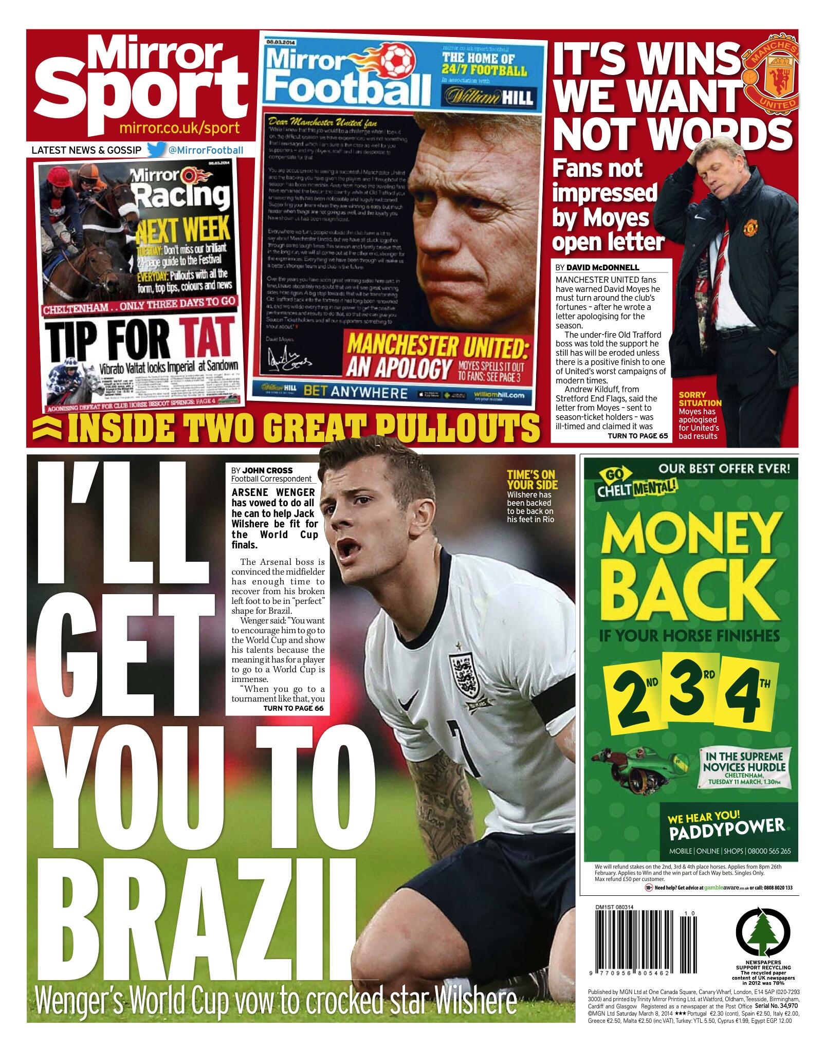 Frontpages: Magazeti ya michezo UK March 8